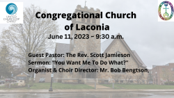 The Congrgational Church of Laconia 6-11-23 Livestream June 11, 2023 Video SHARE ON Twitter Facebook Buffer LinkedIn Pin It Leave a Reply Cancel replyYour email address will not be published. Required fields are marked *Comment * Name * Email * Website Δ Continue Reading The Congregational Church of Laconia 6-4-23 Livestream The Congregational Church of Laconia 6-18-23